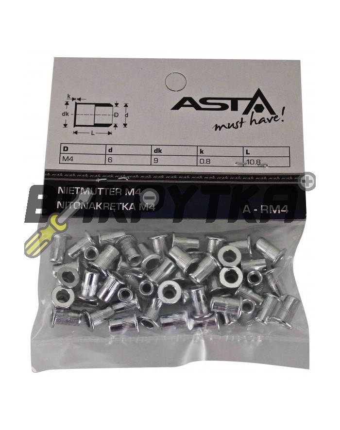 Заклепки різьбові М4, 50шт (AL) ASTA A-RM4