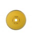 Професійний турбо плюс алмазний диск для різання граніту, мармуру, пісковика, цегли, порожнистих блоків, вапняку та інших кам’яних блоків. Постійний контакт леза з ріжучим матеріалом забезпечує більш плавний зріз порівняно з лезами з сегментним профілем. Хвиляста структура серцевини допомагає видаляти сміття та охолоджувати лезо, збільшуючи тим самим термін його служби.